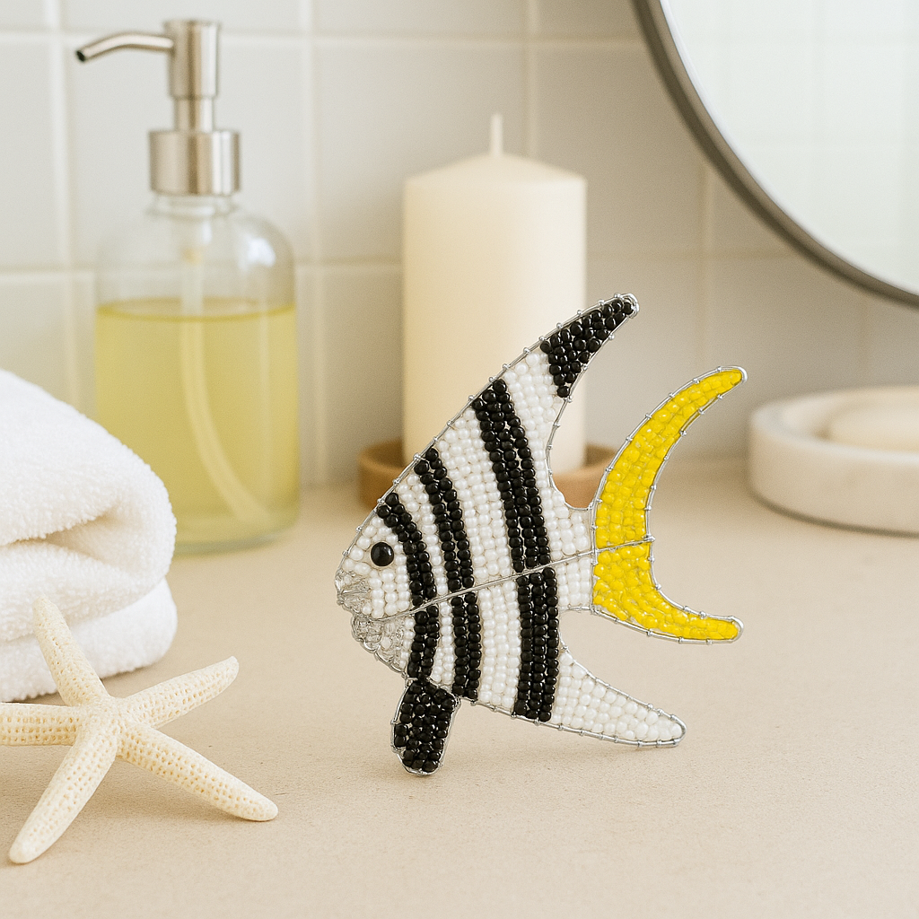 Handmade Beaded Minimal Angel Fish – Haitian Artisan Coastal Décor. (Set of 3)