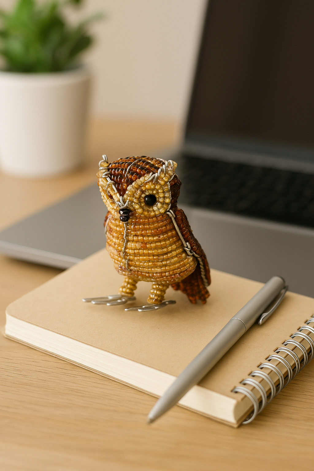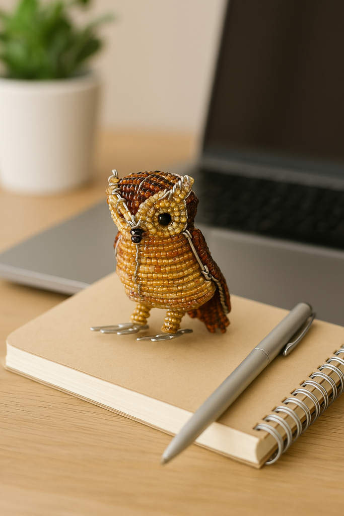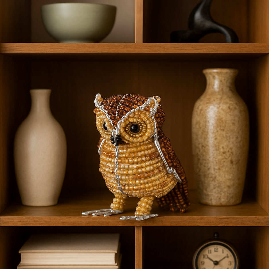This intricately crafted miniature owl is a perfect gift for bird lovers and adds a charming touch to any decor.